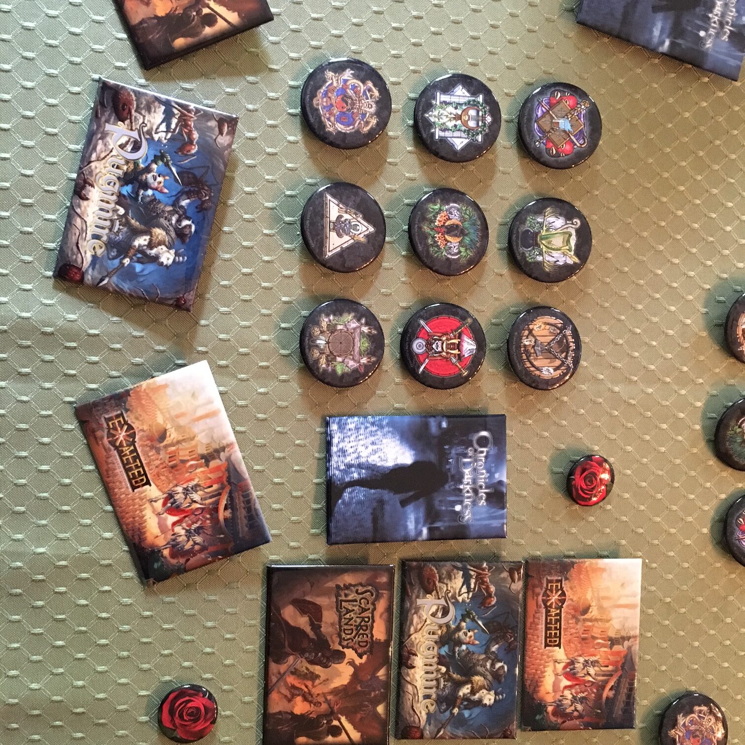 • Not necessarily in the forms at the convention, like with the posters we might do smaller Print on Demand versions for sale on DTRPG. The Scion pantheon buttons may show up in the Scion 2nd Edition Kickstarter at the end of August. We might, might, have other options with our RedBubble store as well. But as free give-aways in the form we have them right now, no.
